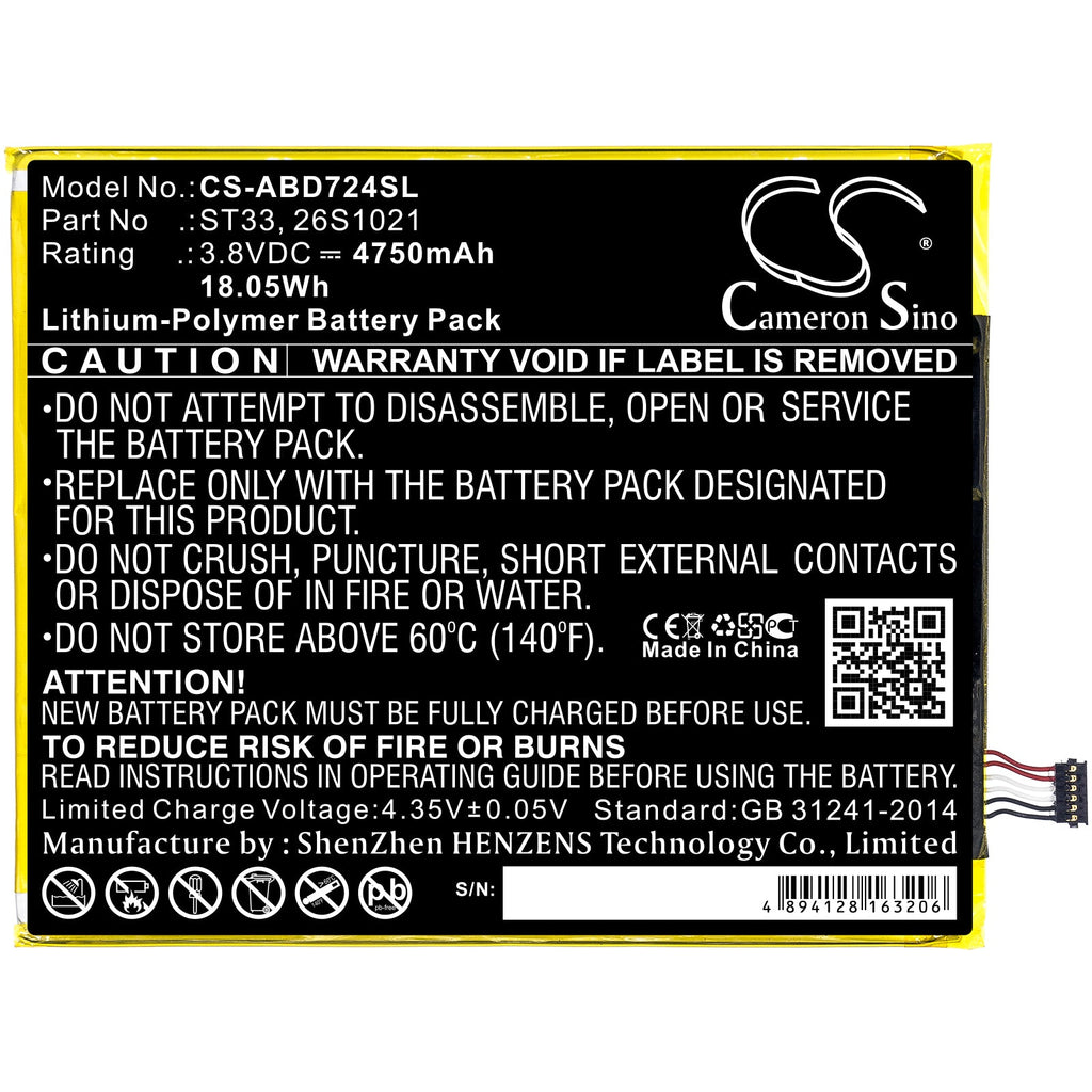 Li-Polymer Battery fits Amazon, K72ll3, K72ll4 3.8V, 4750mAh