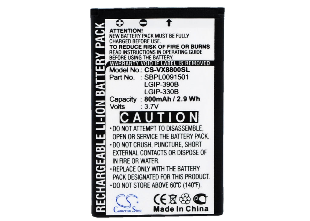 Li-ion Battery fits Lg, Vx8800, Vx8800 Venus 3.7V, 800mAh