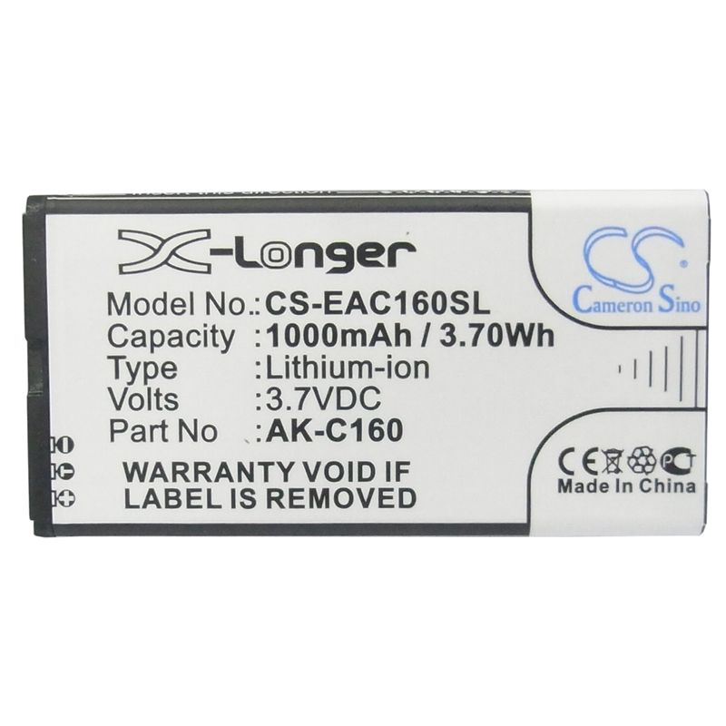 Li-ion Battery fits Emporia, c160, c160_001_rd, c160-001 3.7V, 1000mAh
