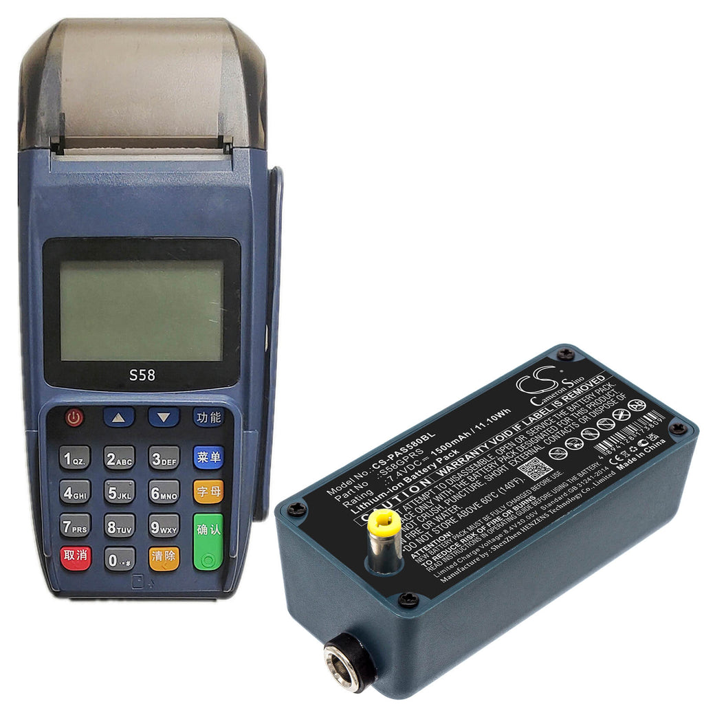 Li-ion Battery fits Pax, S58 7.4V, 1500mAh / 11.10Wh