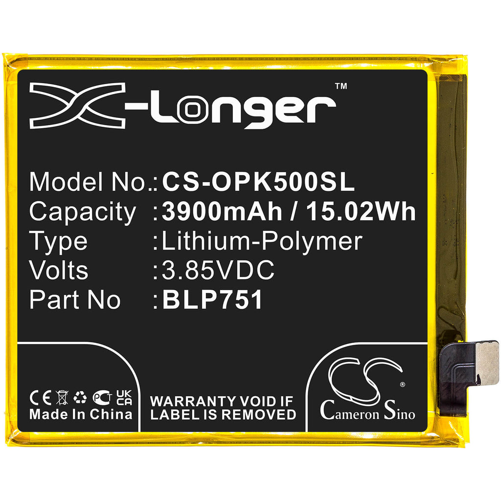 Li-Polymer Battery fits Oppo, K5, Pcnm00 3.85V, 3900mAh / 15.02Wh