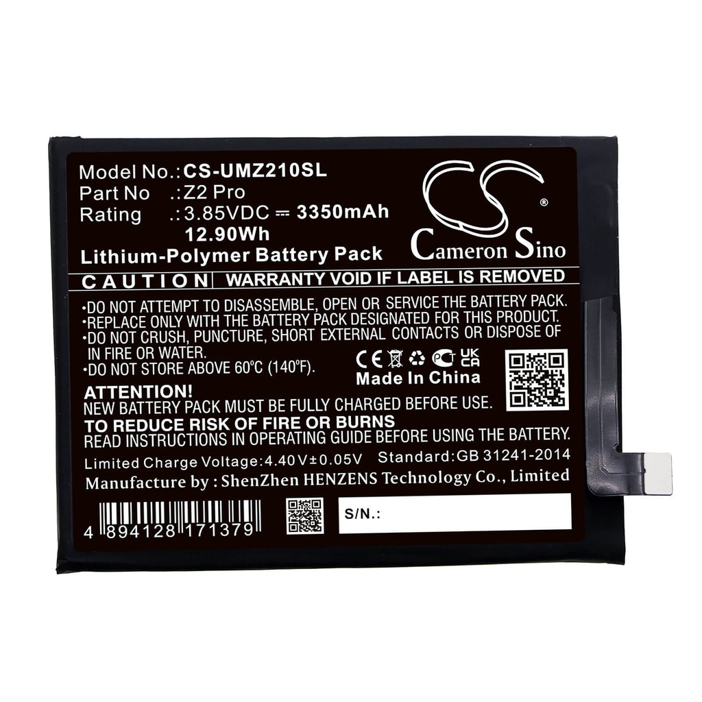 Li-Polymer Battery fits Umi, Umidigi Z2 Pro 3.85V, 3350mAh / 12.90Wh