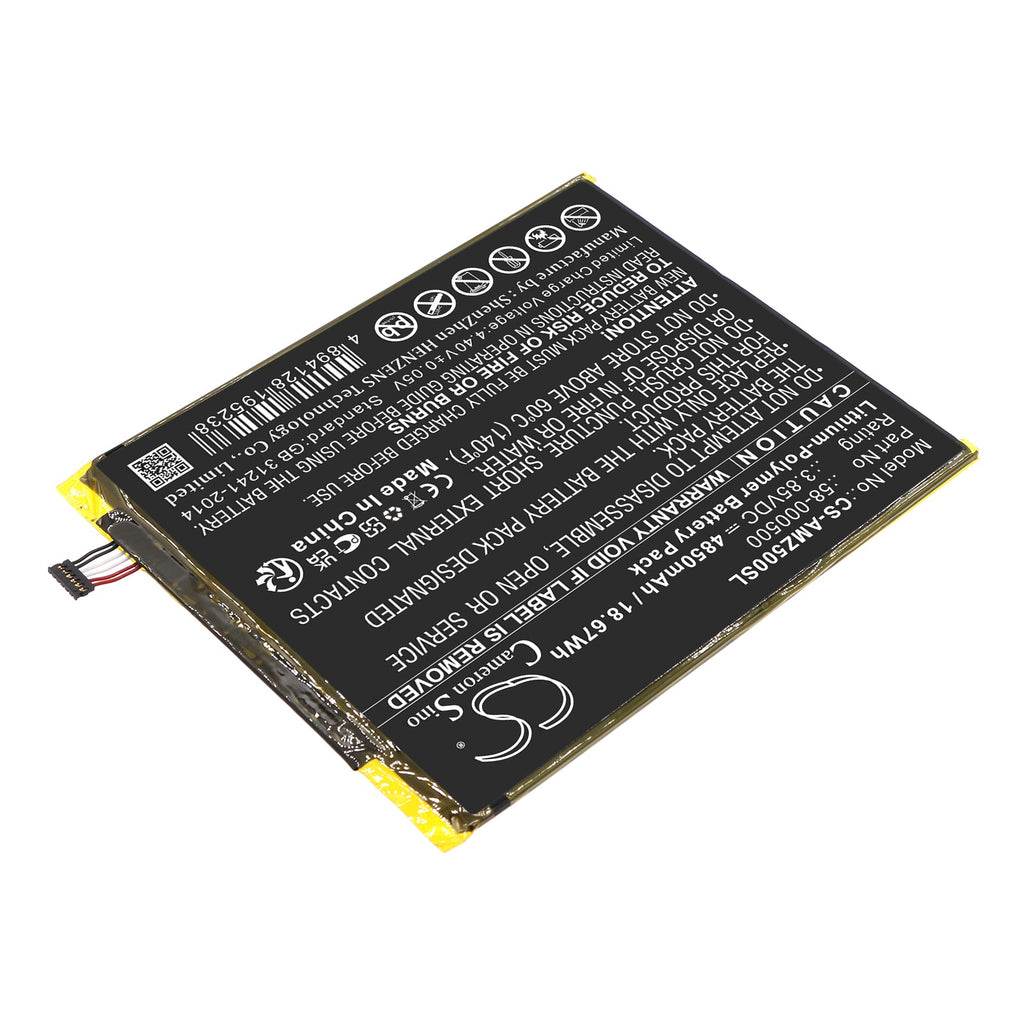 Li-Polymer, Tablet Battery fits Amazon Amztdc5, 3.85V, 4850mAh