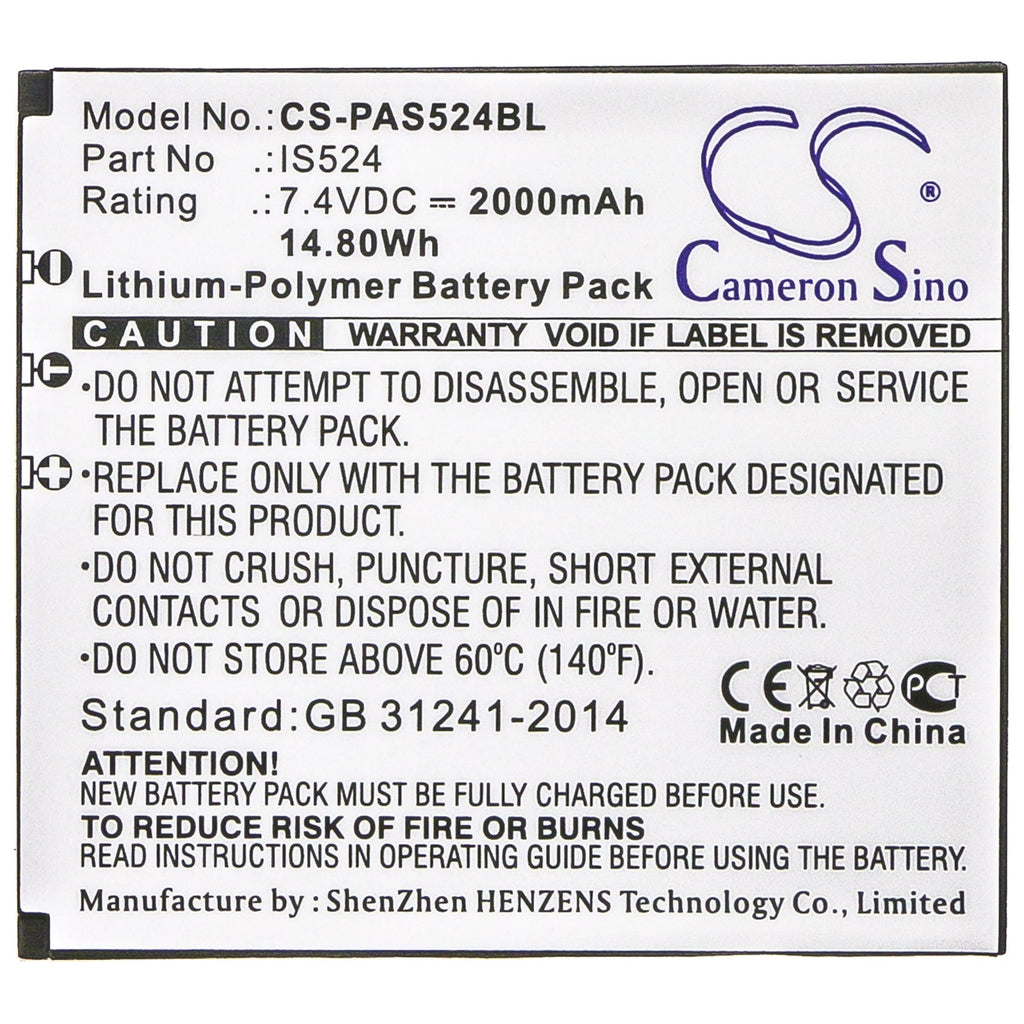 Li-Polymer Battery fits Pax, Is524 7.4V, 2000mAh